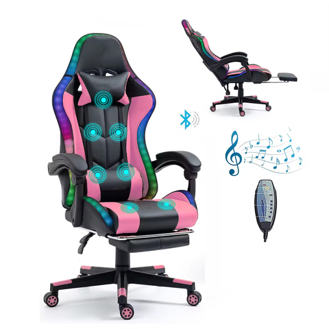 Roze Massage Rugkussen Timmerhout Gaming Stoel Met Voetsteun Laagste Prijs Gaming Stoel Met Rgb Verlichting En Bluetooth Speakers