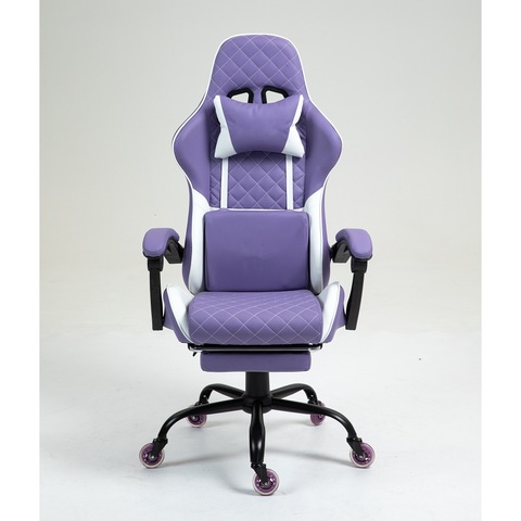 Custom Kleur Logo Gratis Lila Paars Lederen Pantser Gaming Stoelen Liggend Silla Gamer Met Voetensteun