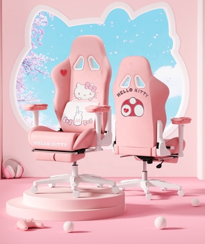 Hoge Dichtheid Gegoten Schuim Pvc Leer Roze Kantoor Gamer Stoel Gaming Schattige Mooie Hello Roze Stoelen Computer Gaming Stoel